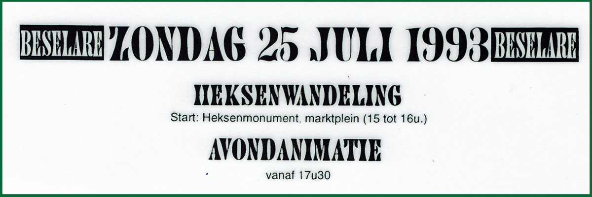 We behielden een sobere versie van de theaterwandelingen in de vorm van onze vertelwandelingen. Die vinden plaats in het jaar van de Beselaarse Heksenstoet.
